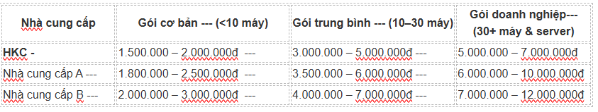 - Báo giá theo số lượng thiết bị: Dựa vào số lượng máy tính, máy in, server…