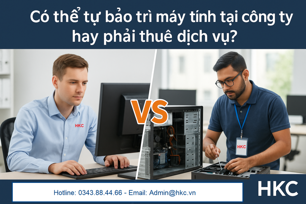 Nhiều doanh nghiệp băn khoăn không biết nên tự bảo trì máy tính tại công ty hay thuê dịch vụ chuyên nghiệp từ bên ngoài. Câu hỏi này tưởng đơn giản nhưng thực tế phụ thuộc vào nhiều yếu tố như quy mô, nhân sự IT, chi phí và mức độ quan trọng của hệ thống. Hãy cùng HKC phân tích chi tiết để có quyết định phù hợp cho doanh nghiệp bạn.